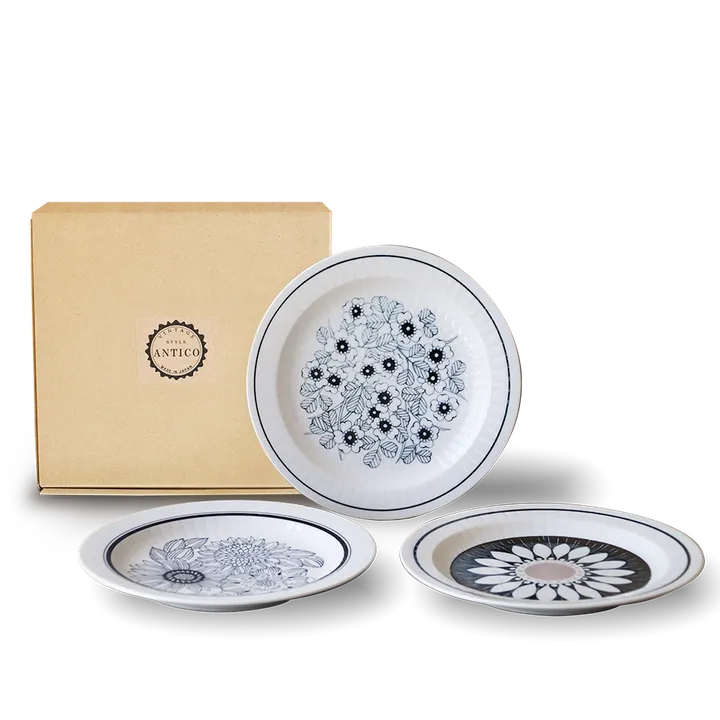 北欧のアンティークな雰囲気を感じさせる花柄のアンティコフラワー ヴィンテージ風なデザインと彫刻をほどこした表現で料理を引き立てる普段使いの器です ゆったりとした心地の良い時間、アンティークな雰囲気と洗練されたデザインは飾るだけでも絵になり、食卓に優雅なアクセントを添える 白と黒のモノトーンの落ち着きが料理を引き立て、シンプルながらも確かな存在感