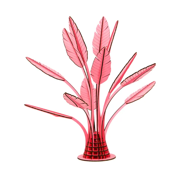 Augusta294は観葉植物であるオーガスタをモチーフにしたモデルです。 12枚の葉をつけた長さや反りの異なる茎をベース部分にバランスを見ながら自分の好みに差し込むことができます。 オーガスタはバナナのような大きな葉を持ち、置くだけで南国リゾート感を楽しめる植物で、花言葉は「輝かしい未来」「暖かい心」です。 素晴らしい未来を想像させるような花言葉を持つオーガスタは、開店祝いや開業祝い、新築祝いなどのプレゼントにも多く用いられます。 Augusta294ははさみやカッター、接着剤を使わずに組み立てる事ができます。 FLATSの精緻な造形をお楽しみいただき、Augusta294が皆様の心を癒す一助となれば幸いです。