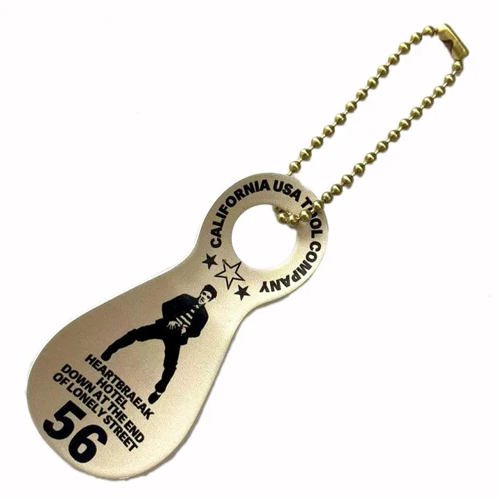 ビンテージなデザインのシューホーンで、普段はキーホルダーとして使用し、携行することでいつでもシューズの踵をつぶすことなくスマートに履くことができるアイテムです。ギフトにもオススメな商品です。 真鍮製のボールチェーンが付いているので鍵と一緒にキーホルダーとして普段から持ち歩けます。 靴を脱ぐ習慣の日本人にとってシューホーンは、持っているとさり気なくもスマートさと気の利いた印象を与えてくれます。 革靴はもちろん、スニーカーの着用時にも使用すると踵部分の傷み予防になるので毎日でも使用するのがおすすめです。 本体アンティーク調のプリントにエイジング加工を施しおりますのでプリント剥がれやカスレがございます。