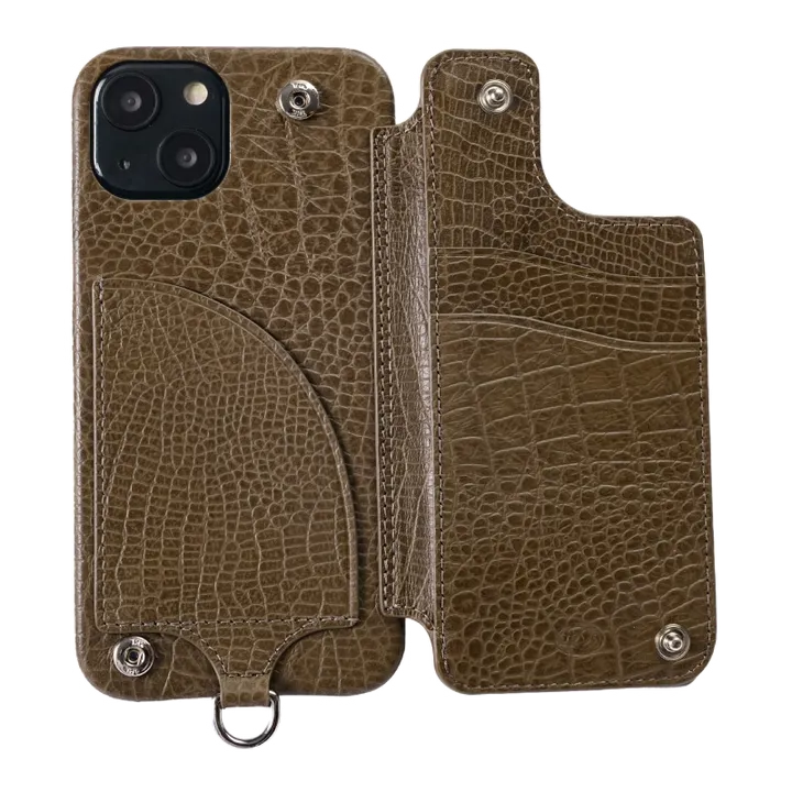 POCHE FLAT CROCO iPhone14 クロコ型エトープ