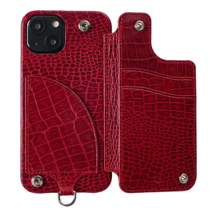 POCHE FLAT CROCO iPhone14 クロコ型ワインレッド