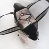 横幅上部 43cm 下部28cm 高さ 26cm マチ15cm 持ち手高さ18cm ハンドル幅11cm テープ幅30mm 重さ 380g