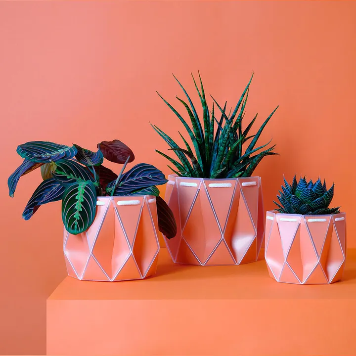 ダイソンでプロダクトデザインを手掛けていたAndrewにより、折り紙から着想を得てデザインされた、サステナブルでモダンなプラントポット&ベース。