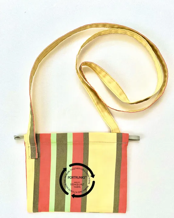 回収された海洋プラスチックゴミをアップサイクルしたSEAQUAL®YARNという糸を使い、ポルトガルの伝統ある機屋「Lemar」社で織った生地で作っています。