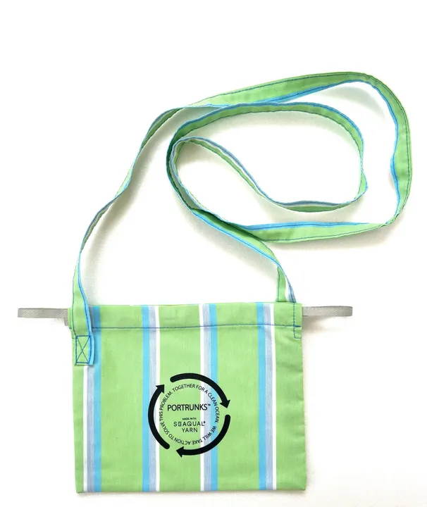 回収された海洋プラスチックゴミをアップサイクルしたSEAQUAL®YARNという糸を使い、ポルトガルの伝統ある機屋「Lemar」社で織った生地で作っています。