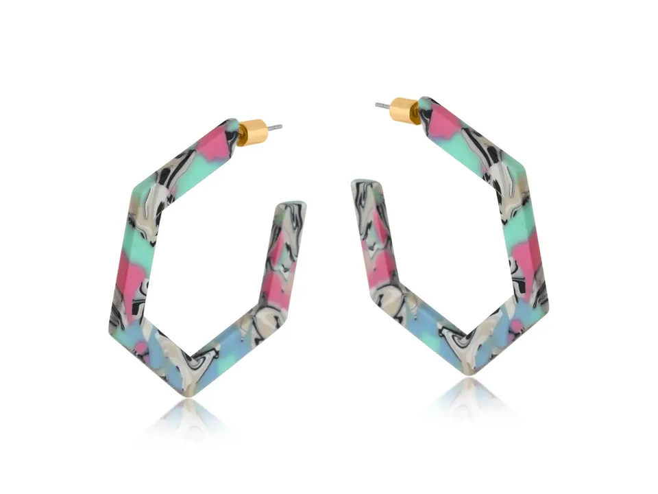 Kathryn レジン六角形ステートメントフープピアス PINK BLUE