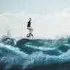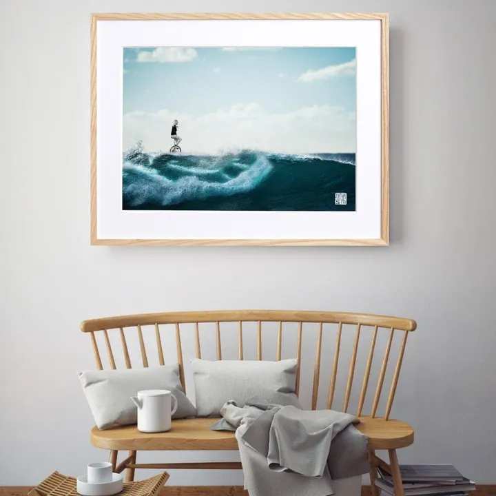 【現代アートポスター】 海面 波 一輪車 少女 写真コラージュ A2(L) フレームセット:無垢 56.1×74.3cm