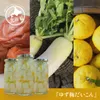 角切りの大根と柚子と梅のさわやかな柑橘系ピクルス 柚子の香りに梅の酸味のアクセント、さらに昆布の旨みが織りなすハーモニー 自然農園で栽培されたワックス不使用の香り高い柚子と梅を和えた角切り大根で作るピクルスはちょっとしたおもてなしにも喜ばれる逸品。 炊き立てのご飯と絶妙な旨味のピクルス液を使った酢飯はお祝い事でも喜ばれます。海鮮との相性も抜群です。 大根は、日本で一年中親しまれている根菜の一つですが、意外と多くの栄養素を含んでいます。 アミラーゼという酵素は消化を助ける働きがあり、カリウムは、利尿作用があります。ビタミンCには、免疫力を高める効果があります。 【参考栄養素】 ◎ビタミンC:ストレスや風邪に対する抵抗力を強めるビタミンCが豊富で鉄やカルシウムの吸収を良くする働きも期待出来ます。 ◎カリウム:塩分(ナトリウム)を排出、筋肉の収縮、血圧の上昇を防ぐなどの作用があります。 ◎食物繊維:消化酵素で分解されない物質で、便通を整えたり、脂質や糖、ナトリウムなどの排出をサポートしたりする働きがあります。 【生産者】 大根:かわいふぁーむ(札幌) 柚子:Cachette(高知県) 梅:自社製造