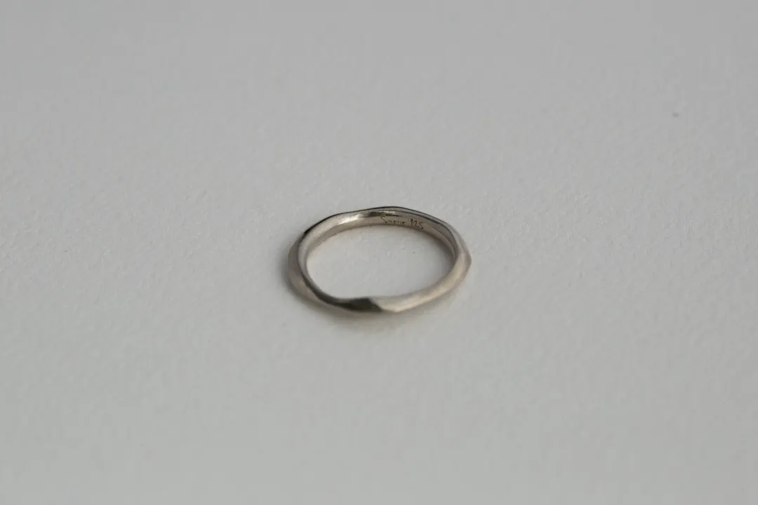 自然な曲線と歪み、指に馴染むリングです。 Super Shine : 光沢のある仕上がりです。 ジェンダーレスリング Recycled silver 925 Size : 9 / 11 / 13 / 15 / 17 / 19 / 21号 (Japanese size) 【ご購入前にご確認ください】 ・Handcrafted 商品の為、一つひとつ多少形が異なります。 ・Silver製品は細かな傷等がある場合がございますが、不良品ではございません。 ・シルバーの特性上、柔らかく傷つきやすい為、商品を取り扱う際は優しくお取り扱いください。