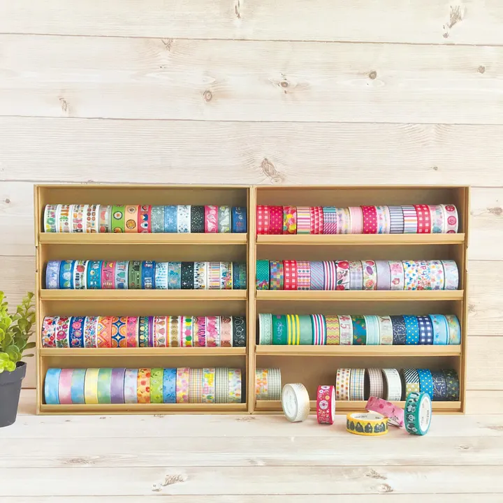 【マスキングテープケース LL】 ●コレクションをすっきり、しっかり収納でき、ショーケースのように   楽しむこともできる、マスキングケース。   収納数 『ナンバーワン1』 のタイプ!       <M・L・LL の3サイズ展開> ●開いて部屋に飾ることもできます! ●開閉口があるので、開けやすい!   開閉扉にはマグネットを内蔵しているため、パチっと固定できます。 ●内側には落下防止用ストッパーが付いております。 ●たくさん集まったマスキングテープの整理収納にオススメです。  マスキングテープ以外にも小物を陳列収納するためのケース  としてもご使用いただけます。 ●表面にマスキングテープを貼り付けて、デコレーションして  楽しむこともできます。 ●外寸:約 W247×H265×D120mm  1段あたりの内寸:約 W237×H62.5×D50mm   ●最大収納個数:約120個(15×4段×2 )  ※15mm幅のマスキングテープを、包装をはずした状態で収納した場合  (※こちらの商品はケースのみになります。   使用イメージ写真に写っているマスキングテープは含まれません。) 【マスキングテープケース ラインナップ】 ・『マスキングテープケース M 』 MTC-01CF ・『マスキングテープケース L 』 MTC-02CF ・『マスキングテープケース LL』 MTC-03CF