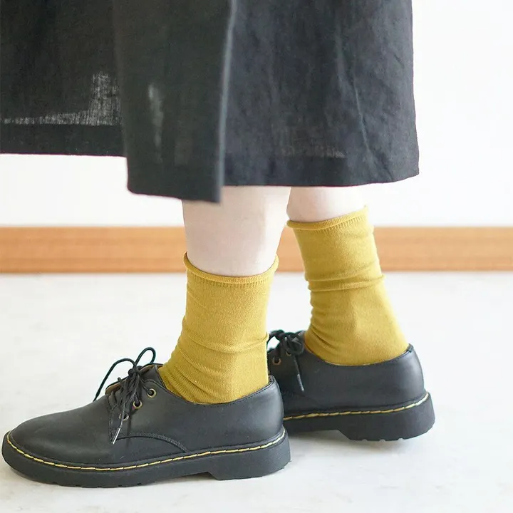 【BR1522】 締め付けないコットンカラーソックス コットンカラーソックス-マスタード-23-25cm