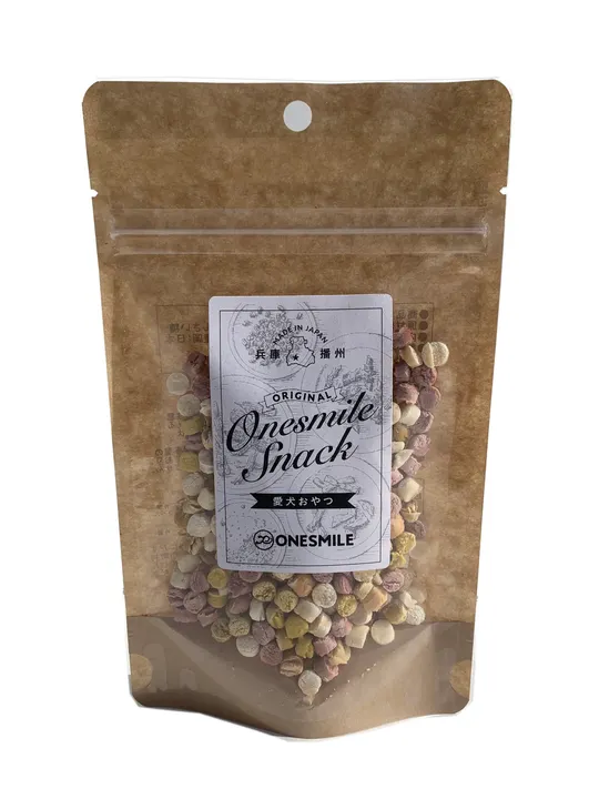 「4つの素材をぎゅっとひと袋に」国産米粉ベースの色とりどりおやつ。 かぼちゃ(国産)・紅芋(沖縄県産)・りんご(青森県産)・米(国産)の4つの味わいをひと袋に。 素材の自然な甘みを生かし、香ばしく焼き上げた小さなビッツタイプの米粉クッキーは、手軽に与えやすいひと口サイズ。 ご褒美タイムやお散歩後のおやつとして、色とりどりの香りを一度に楽しめます。 無添加・国産素材だから、愛犬への毎日のちょっとしたご褒美にぴったりです。 成分表(100g当たり): エネルギー 348kcal 粗タンパク質 6.7%以上 粗脂肪 6.5%以上 粗繊維 2.4%以下 粗灰分 2.0%以下 水分  10.0%以下 1日当たりの給与量: 超小型犬(5kg以下) 5~10g 小型犬(5~10kg) 15~20g 中型犬(10~25kg) 25~50g 大型犬(25~40kg) 50~70g