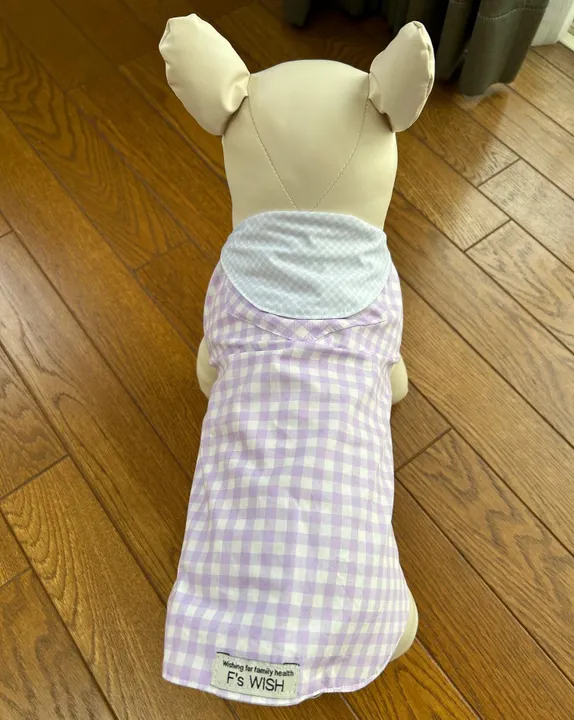 商品名:【熱中症対策クール・ウエア】暑い夏に!遮熱・放熱・UVカット クール・ウエア Lサイズ 全3色:ネイビードット柄(サッカ生地)・ドット柄・パープルチェック柄 *保冷剤ポケット付き 夏の強い日差しと高温は、私たち人間だけでなく、大切な家族である愛犬にも大きな負担をかけます。特に、短頭種(フレンチブルドッグ、パグ、シーズーなど)や、被毛が多い犬種(ゴールデンレトリバー、シベリアンハスキーなど)、そして高齢犬や子犬は、熱中症のリスクが非常に高くなります。暑さを我慢しているうちに、命に関わる危険な状態になってしまうケースも少なくありません。 そんな熱中症から愛犬を守るために開発されたのが、当店の「ペット用クールウェア」です。このウェアには、遮熱・放熱・UVカットの3つの機能を備えており、夏の外出時でも愛犬の体温上昇をしっかり抑えてくれます。遮熱素材が太陽の熱を反射し、放熱性のある生地が体内の熱を効率よく逃がす設計になっています。また、UVカット機能により、皮膚や被毛への紫外線ダメージも軽減。炎天下のお散歩や、アウトドアの時間もより安全・快適に過ごせます。 デザインは機能性だけでなく、着心地にもこだわりました。通気性が良く、動きやすいカッティングで、長時間の着用でもストレスを感じにくい設計です。愛犬が快適に過ごせることを第一に考えた仕上がりとなっております。 暑さが本格化するこれからの季節、**「うちの子は大丈夫」と思わず、事前の熱中症対策がとても大切です。**特に、口呼吸が主な犬たちは、体温調節が苦手。呼吸が荒くなる、ヨダレが多い、ぐったりするなどの症状が見られた場合は、すぐに涼しい場所に避難させ、冷やす処置を行い、必要に応じて動物病院を受診してください。 愛犬の健康を守るために、暑さ対策は「特別なこと」ではなく「毎日の習慣」として取り入れていきましょう。 このクールウェアが、あなたと愛犬の楽しい夏のお出かけを、より安心で快適なものにするお手伝いができれば幸いです。 ※サイズにご注意ください。 Lサイズ 首回り43~53cm 胴回り63~71cm 着丈47cm 素材:クール生地 ナイロン92% ポリウレタン8% 表地:コットン100% お洗濯可能で、いつでも清潔に保つことができます。(洗濯ネットに入れてお洗濯してください)