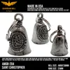 アメリカ製ガーディアンベル社製ガーディアンベルです。 MADE IN USA アメリカ製 交通安全 魔除け 御守り ガーディアンベル アメリカのライダーの間には、事故や、転倒の原因は「道路にひそむ悪魔」によるいたずらだという伝説があります。悪魔は走る者に悪戯やトラブルを運んできます。このベルは美しい音色で悪魔たちを追い払うと言われ愛されています。そんな悪魔のいたずらを防ぎ、御守りとなるのが、守護者のベルという意味を持つガーディアンベル。 日本でも鈴の音(ね)は神道では魔除けの音と言われています。ピューター製の鈴でいい音色でガーディアンベルはデザインも様々あります。 またガーディアンベルにまつわる伝説として、プレゼントとして送られたベルの効果は、自分で手に入れたものの2倍になると言われています。 それゆえに彼氏・彼女・友達・家族へのプレゼントとしての人気も非常に高まっています。 シルバーアクセサリーのようにおしゃれに装着できて素敵な音色を奏でるガーディアンベル。 バイカー以外にも自転車や旅・交通安全のお守りとしてお使いいただけます。 カバン・ランドセル・キーホルダー・ペットの首輪等に付けてお使いください!! ※タイラップ等でバイクのフレームにも簡単に取り付けできます。 アメリカンモデルだけではなく、旧車ファン、レプリカライダーまで、さらにバイクだけでなく、自転車や車にもピッタリな御守りとなっています。 アクセサリーとしても人気で、アイディア次第で車体だけでなく、キーホルダーや鞄など、どこにでも付けておしゃれに楽しめます。