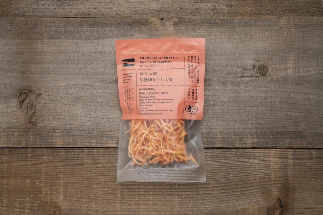 山上の北条風早園地で育てた有機人参を千切りにし乾燥させました。甘みをしっかり感じる風味豊かな切り干し人参です。原料約300g分の有機人参が、乾燥後25gに凝縮されています。 長めに千切りしています。お好みの長さにカットして、軽く水洗いしてからお使いください。