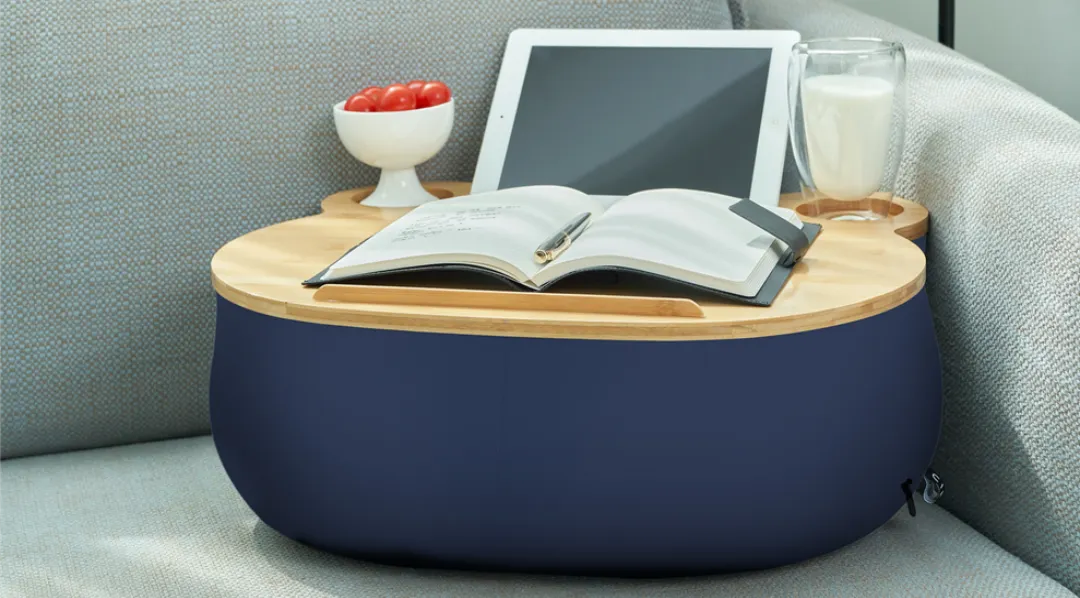 リモートワーク、勉強、メイク、ネイル、読書、食事、子供机、車内、など使い勝手が良い、クッションテーブルです。 高さが20㎝あり、安定します。 テーブル部分に清潔・耐久・耐水に優れた竹を使用、飲食に快適で汚れてもサッと拭くだけで簡単です。 ファスナーで中身が着脱可能、単体でクッション・枕としても使えます。 クッションは、中性洗剤を使用して弱く揉み手洗いしてください。ねじって絞らずに陰に2〜3日程度干してください。洗濯機と乾燥機は使用不可です。