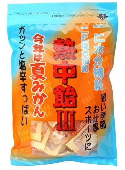 発売以来10年以上にわたり、ロングセラーとなっている熱中飴。新たな熱中症対策として発売した熱中飴は、パイオニアとして現場やスポーツシーンを支え続けています。 1粒に300mgを超える塩分量は業界トップクラス。今回ははシリーズ第3弾としてレモン・梅味に続き、夏みかん味が登場。体に心地よい塩辛すっぱさをぜひお試しください。
