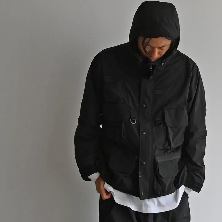 都市とフィールドをつなぐマルチポケットフーデッドジャケット。 視覚的に無駄を削ぎ落としながらも圧倒的な収納力を誇る多機能フーデッドジャケット。 フロントには大小様々な立体ポケットを配置しギアとしての存在感を放ちながら、 日常にも馴染む洗練されたバランスに仕上げました。 軽量でハリのあるナイロン素材は、防風性・撥水性に優れ、 街と自然どちらにもフィットする機能美を実現。 ルーズすぎないシルエットとマットな印象が、 アウトドアウェアとは一線を画すモードな表情を演出します。 Dカンや止水ジップといった機能的ディテールを随所に散りばめた静かにギア感を宿した一着。 <モデル着用> Men’s 身長183cm Mサイズ Ladies 身長163cm Mサイズ ~撥水機能素材~ 撥水加工を施した生地を使用しています。 水滴や軽い雨を弾くため、天候の変化にも安心して着用いただけます。 [快適性]通気性を保ちながら水をはじくため、ムレにくく快適な着心地。 [機能性]アウトドアやタウンユースなど幅広いシーンで活躍。 撥水加工により汚れが付きにくく、お手入れも簡単。 ※完全防水ではありませんので、長時間の雨天や強い水圧下での使用にはご注意ください。 ~耐光素材~ 日光や照明による退色・劣化を軽減し、美しい色合いや質感を長く保つことができます。 紫外線などの光に強く、カラーを維持。 [耐久性]長期間の使用でも風合いを損ないにくい。 屋外や日当たりの良い環境でも安心してご使用可能です。 ※ご使用環境や経年によっては多少の色変化が生じる場合があります。 ~汗堅牢度~  汗に含まれる成分による色落ちや色移りを抑える品質確認を行っており、 日常の着用シーンでも安心してご使用いただけます。 [色落ち防止]汗による変色や退色を軽減。 [衣類保護]他の衣類や肌への色移りを抑制。 [品質保証]日本工業規格に準拠した試験で確認済み。 ※ご使用状況や経年により、多少の色変化が生じる場合があります。 【NoiR 販売価格について】 弊社設定上代(税込価格)での販売のご協力をお願いいたします。 また、商品に対してのクーポン等はご遠慮いただいております。 ショップ全体でのクーポン等は問題ございません。 ご理解・ご了承のほどお願い致します。