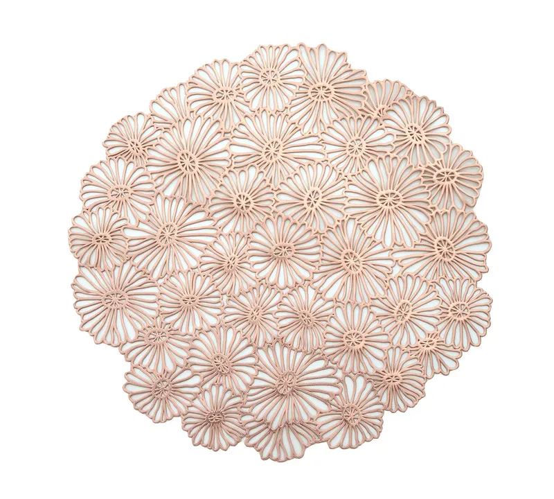 お誕生日会やクリスマスパーティー、お正月にひな祭りや端午の節句などなど、お祝い事は年間目白押し。 そんな時にいつもの食卓を上品に彩りワンランクUPしてくれるプレイスマットが活躍します。 PVC素材は汚れても水拭きでサッと落とすことができお手入れ簡単です。 ラウンドは目が詰まっており、フラワーは花びらのところが抜けています。 今期はサクラカラーが仲間入り。 サクラと言っても淡い色ではなく、メタル系のピンク色という方がイメージしやすいと思います。定番のシルバー、ゴールドにピンク系が加われば、食卓の華やかさはMAXに。 あえて、色違いで揃えてももとせシリーズの食器と組み合わせるほか、お手持ちの食器とも合わせてほしい! 食卓が一気に華やぎテーブルコーディネイトのアクセントとなります。 洋食器はもちろん、漆器などの和食器とも相性が良いです。