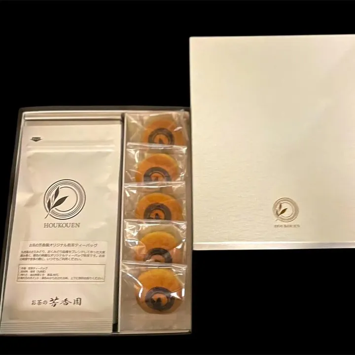 大人気の九州産煎茶ティーバッグと芳香園ロゴの焼印を入れた縁起物の福々まんじゅう5個をギフトセットにしました。ギフト箱にもこだわり、芳香園のロゴマークが金色の箔押しで飾られており非常に高級感があります。 【煎茶ティーバッグ】 日本にわずか39名しかいない日本茶のプロフェッショナル、「日本茶鑑定士」のお力添えのもとで旨味、甘み、コクをバランス良くブレンドして作った大変飲みやすく、緑色の綺麗なオリジナルティーバッグ煎茶です。 お茶の時間やお食事の際に、いつでもお飲みください。皆様に豊かで愉しい心温まるお茶時間をお届けします。 【福々まんじゅう】 ふっくらとした食感の生地に、こだわりの抹茶餡は、和菓子職人が抹茶の風味を活かすために試行錯誤の末にたどりついた逸品です。お茶と共にたくさんの方々の幸せのご縁が広がりますよう願いを込めてネーミングしており、一つ一つ丁寧に手作りしております。