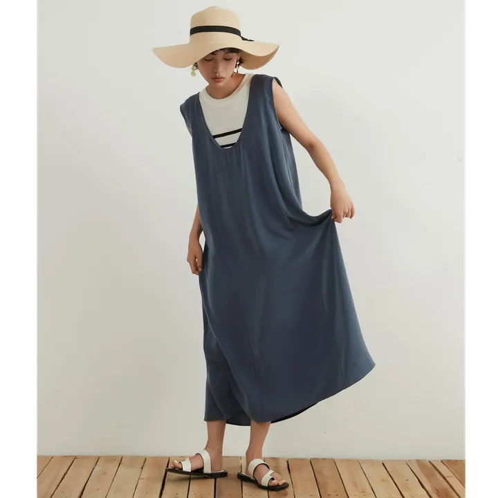 KNNO324サテンドレープ2WAYジャンスカワンピース BLUE/FREE