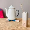 おかげさまで、 「なべしきハウス」シリーズ累計販売個数、 10,000個達成!!! (2022年2月現在)   お家でも!アウトドアでも!  コンパクトに折りたため、飾ることもできる鍋敷きとして人気の「なべしきハウス」。 こちらを「アウトドアでも使いたい!」というお声をヒントに 発売された「なべしきハウス・TENT」シリーズです。 --- 〈 使わないときは、オブジェのように 〉 そのままテーブルや棚に置いておけば、インテリアのひとつになります。 革ひも部分をフックなどに引っ掛けて吊るしておくこともできます。 〈 使いたいときにパッと広げて鍋敷きに早変わり 〉 広げたときの大きさは、約22×22cm。 小さなポットから大きな土鍋まで幅広くつかえるサイズです。 〈 米・デュポン社のケブラーコードを採用 〉 木製パーツをつなぐ紐には、米・デュポン社製のケブラーコードを使用。 高強度で耐熱性にも優れた素材のため、熱い鍋やフライパンに触れても 溶けてしまうような心配はありません。 〈 選べる3色 〉 通常タイプの「なべしきハウス」よりも、ちょっとポップでモダンテイストなツートンカラータイプ。 着色には、ミルク原料を主成分とした天然由来の塗料を使用しています。 写真1枚目の左から、カーキ、ブルー、ベージュの3色展開。 やわらかでマットなカラーがアウトドアシーンに映えます。 ※天然木のため、木目や色は商品によって若干異なります。