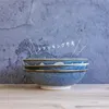 藍色と手描きの風合いを楽しむ器、ブラッシュブルー。 製造工程において色の濃淡や釉薬の流れ、柄のにじみなど、それぞれが違う出方になるのも特徴です。 それが個性となり唯一無二のものに。 手描きのような質感をお楽しみください。 和風にも洋風にも使っていただきたい、スタイリッシュなスモールボウルです。 煮物など汁気のある料理や、とんすい代わりの取り皿にもぴったりです。