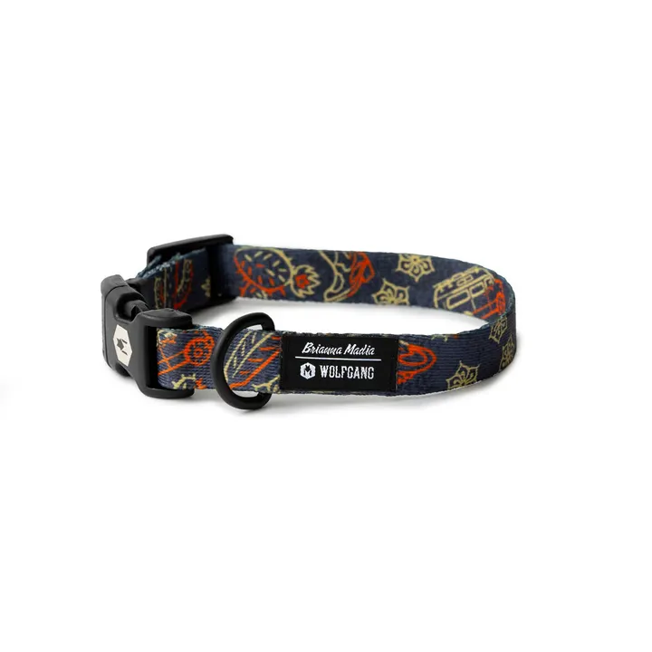 American Madeのグラフィカルなテキスタイルの首輪・リード・ハーネスは、あなたのフサフサの毛をした4つ足のベストフレンドのために
