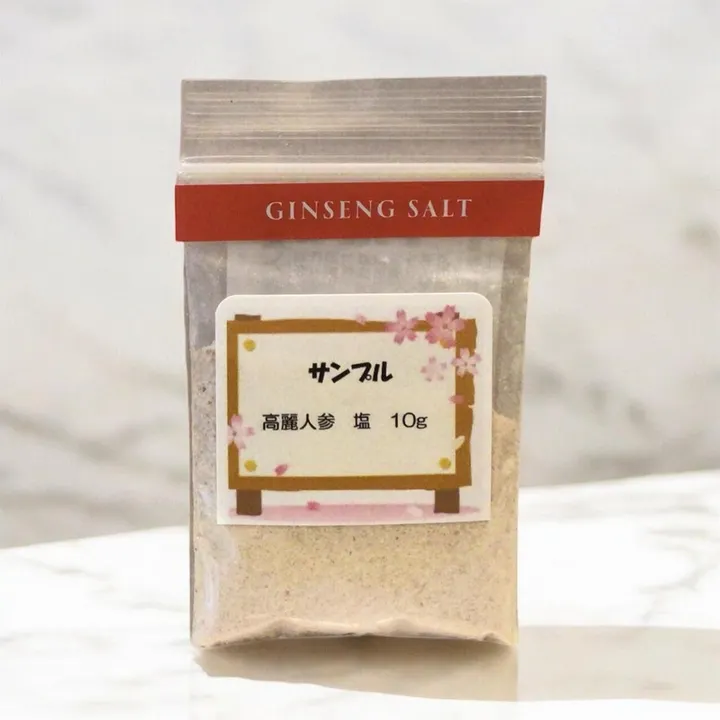 高麗人参と塩をミックスしました。 丘のものは丘の塩と相性が良いということで岩塩を選択し《奇跡の岩塩》といわれるヒマラヤピンクパウダーとコラボしました。蓋を開けるとプンと高麗人参の独特の匂いがします。味は、高麗人参の特有の味と岩塩のほろ苦い味も感じられ程よくマッチしています。普段使うお塩と同じ調味料として、風味を出すためお肉料理などにいかがでしょうか。子供さんのおかず、パンなど高麗人参塩を少し使われると抵抗力をつける効果に発揮しそうです。健康と一緒に夏の塩分補給に少しだけ掌のひらにのせて舐めてみてください。塩分と高麗人参を一緒に摂ることで日頃の疲れが取れて元気がとりもどせそうです。
