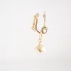 イヤリング【Swing】/スカラップフレーム6mmムーンストーン*キヘイチェーン2wayイヤリング(取り外し可能) 波状の「スカラップ」フォルムと共に メタル素材と天然素材のコンビネーションをナチュラルに楽しむアイテム 連続した半円の波状の縁取りデザイン ホタテ貝の意を持つ「スカラップ」と呼ばれるフォルムを活かし 明るいトーンを纏う天然素材と金属素材とのコンビネーションと ナチュラルなテイストを大切に表現したイヤリング&ピアス 個々の色味の違いや表面の凹凸感など、天然素材ならではの表情を楽しめる淡水パールと ふんわりと浮かび上がるような光を纏う天然石のムーンストーンをチョイス それぞれのナチュラルな魅力にメタルの輝きと揺れ感を添えながら 自然体なムードをやさしく散りばめた作品です ////////////////////////////// 天然素材の表情を上品に引き立て ほんのりと甘さを添えるスカラップデザイン ////////////////////////////// 半円が連なり生み出されるウェーブ模様の『スカラップ』 その様子がまるでホタテ貝を並べたように見えることから「scallop」(英=ホタテ貝)と呼ばれています。 多くは衣服の裾や襟ぐり、袖口や、小物の様々な縁取りのアクセントとして施されることの多いスカラップ模様を オリジナルの枠として一からデザイン。 アクセサリーの小さなデザインの中にもリズミカルな模様が丁寧に表現され 淡水パールやムーンストーンの天然素材に上品に調和し愛らしく引き立てる Oucaらしいオリジナリティが光るひとしなに仕上がりました。 ◆詳細◆ 『スカラップフレーム淡水パール8mm』のモチーフより一回り小さな6mmサイズの天然石ムーンストーンがぴったりおさまる スカラップ模様で縁取ったメタル枠をオリジナルの原型として作成。 ムーンストーンにそっと沿うような端正なフォルムと素材を邪魔しない薄さにこだわりながら、 その魅力を損なうことなく引き立てるメタル枠をイメージし、ムーンストーンとメタリックの見え方がちょうど半々くらいとなるよう仕立てました。 主張し過ぎず、ムーンストーンにしっくりと馴染みその魅力を際立たせる好バランスのスカラップ模様は、オリジナルならではの絶妙な仕上がりです。 その小ぶりなサイズ感と、お花や実を思わせるようなスカラップ模様の曲線とムーンストーンのコンビネーションがダイレクトに楽しめるよう 淡水パールのモチーフとは枠の向きを変えデザイン。 正面から見た時にはマットなゴールドカラーのスカラップ枠とそこから覗くまろやかな乳白色のムーンストーンの色合いや質感のミックス感、 また柔らかな輝きとナチュラルさを引き立てるようにメタル部分の表面に施した筋目のテクスチャーなど、 コロンとした魅力的なモチーフの立体感を様々な角度から楽しめます◎ スカラップ模様で縁取ったメタル枠と組み合わせることで、優しいムーンストーンの表情にほんのりと甘さ漂う女性的な雰囲気が相まって、 小さなモチーフのなかに「かわいい」がギュッと詰まったチャームに仕上がりました。 こちらはモチーフのデザインをシンプルに楽しみながら、モチーフの取り外しも叶う2way仕様のイヤリング。 コロンとした丸型に近いフォルムで軽やかに揺れるモチーフは、クリップタイプのイヤリング金具から取り外しができるチャーム仕様。 安定感ある着用感が楽しめるクリップタイプの金具を用いたイヤリングには、 凛としたヴィンテージ感をまとうキヘイチェーンそのままをイヤリング金具に溶接加工しました。 コンパクトなミニサイズのイヤリングながら、マットなゴールドカラーの柔らかな輝きとふんわりとした光を纏うムーンストーンを優しく引き締めるアクセントとなるようなデザインに仕上げています。 チャームの付け外しで異なる表情と着けこなしを楽しめる、マルチな魅力を備えたイヤリングです◎ 金具はクリップタイプ。 シリコンカバーも装着しやすく、快適にお使いいただけます。 ピアスタイプ(EN168P)もございます。 商品には専用のBOXが無料で付属しますので、ギフトにも最適です◎