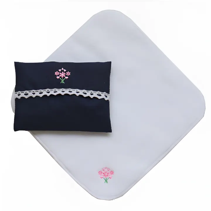 ミニタオルハンカチとミニティシュケースにお揃いの可愛いワンポイント刺繍を施しセットにしました。 タオルハンカチは、タオルの産地「今治」で晒して織りシャーリング加工したとても肌触りの良いタオルハンカチです。 お子さまの小さなポケットに納まりやすい 「15cm × 15cm」 のミニサイズ。 ハンカチの裏面にお名前が書けるタグ付き。 ティッシュケースは飛行機の刺繍は水色コードレーン地で、それ以外の刺繍デザインはネイビーカラーです。 ブーケピンクとブーケ水色のティッシュケースには白のレースをあしらっています。 普段使い~お受験シーンまで安心してお使いいただけるデザインです。 発表会のお礼やお友達同士の記念品などプチギフトとしても大変喜ばれます。 ●ご購入されたお客様の声(一部抜粋) ・お受験用に。タオル地だけど小さくて扱いやすそうです。 ・子どもの通塾用のズボンのポケットからはみださないサイズのティッシュケースを探していました。ぴったりでした。ハンカチとお揃いの刺繍でかわいいです。 ・生地がしっかりしていていて、ケースもサラッとした生地なので汚れにくくティッシュが出しやすそうです。ワンポイント刺繍のくるまも可愛く気に入っています。 ・3歳息子に、ポケットにしまう練習をさせています。他のものは生地が分厚いく嵩張り、ポケットに引っかかったりすると、そこで癇癪を起こしてしまい、、、断念してしまうことが多かったのですが、こちらのティシュケースは少し薄めの為、スマートさがあり入れやすいみたいです!