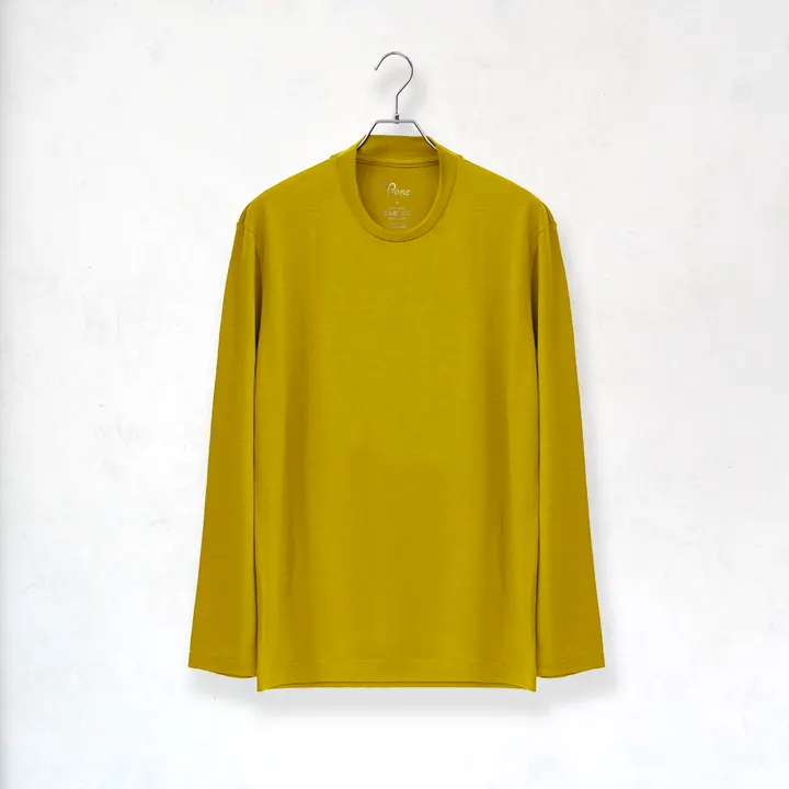 【発送について】在庫商品につきましては1週間以内に発送いたします。在庫のない商品は生産いたしますので1~2ヶ月のお時間をいただきます。具体的な日数は個別に連絡いたします。 天然の温度調節ができるファインメリノウール100%の長袖Tシャツ。 カラーバリエーションが全部で4色のカラー展開。 どんな場面でも合わせることができるTシャツです。 メンズ、レディースにこだわらないユニセックスデザイン。 日本人の体型に合わせピッタリしすぎない、ほどよいフィット感に設計したシルエット。 このTシャツは、ジャケットを着用する際にも肌にジャケットが接触しないように、襟周りが高めにデザインされた日本製のアイテムです。従来のTシャツと比較して、襟への擦れや違和感を軽減することができます。また、上質なファインメリノウールを使用しているため、肌触りが滑らかで、通気性も良く、蒸れにくい素材となっています。夏場でも快適に着用することができます。日本の職人の手によって作られたこのTシャツは、高品質であり、ジャケットとの相性も良く、ビジネスシーンからカジュアルまで幅広く活躍することができます。 [素材]ウール100% [カラー]ダークブラウン・モカブラウン・ネイビー・ブラック・イエロー [サイズ] S 着丈63㎝ バスト 88㎝ 肩巾40㎝ 袖丈53㎝ M 着丈66㎝ バスト102㎝ 肩巾46㎝ 袖丈57㎝ L 着丈69cm バスト108㎝ 肩巾47.5㎝ 袖丈59cm LL 着丈72cm バスト114㎝ 肩巾50㎝ 袖丈 60cm *着丈・バストは±1㎝程の誤差が生じる場合があります。 洗濯の際は裏返して洗濯ネットに入れて洗濯機(弱設定)で洗濯可能です。 乾燥機の使用はお避けください。