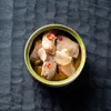 北海道滝川産合鴨のささみをにんにくとオリーブオイル、唐辛子でじっくりと煮込んだアヒージョ。パスタに絡めたり、パンに載せたり、お酒の肴にも。