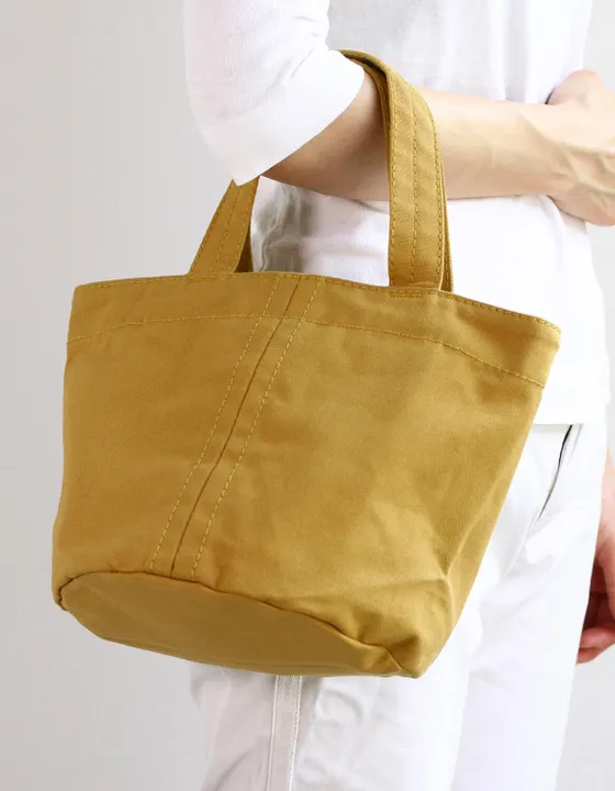 しっかり感が程よいキャンバス生地(14oz相当)で作ったシンプルなトートバッグ。 底が円形のチューブ型で、見た目よりもたっぷり入ります。 使い込み、洗濯をすることで風合いと愛着が増すバッグは、気軽に使えるリーズナブル感と季節やコーディネートを楽しめるカラー展開が人気です。 内側にファスナー付きポケット1つと、開口部にスナップボタン。