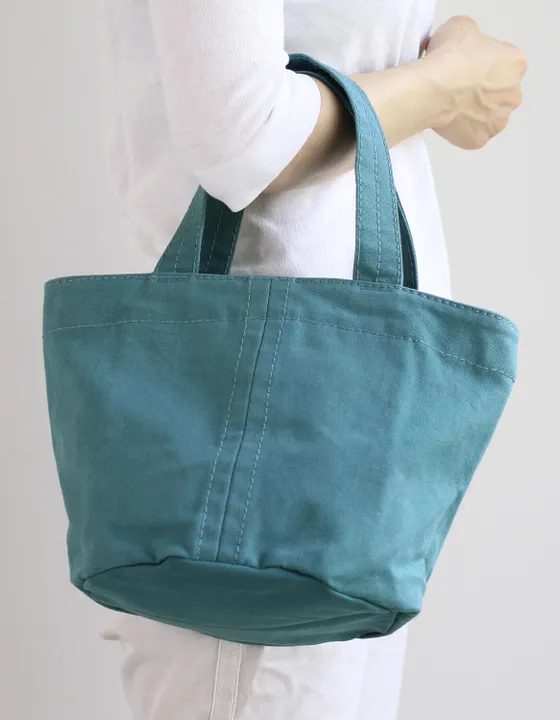 しっかり感が程よいキャンバス生地(14oz相当)で作ったシンプルなトートバッグ。 底が円形のチューブ型で、見た目よりもたっぷり入ります。 使い込み、洗濯をすることで風合いと愛着が増すバッグは、気軽に使えるリーズナブル感と季節やコーディネートを楽しめるカラー展開が人気です。 内側にファスナー付きポケット1つと、開口部にスナップボタン。