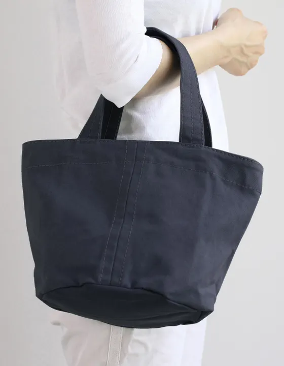 しっかり感が程よいキャンバス生地(14oz相当)で作ったシンプルなトートバッグ。 底が円形のチューブ型で、見た目よりもたっぷり入ります。 使い込み、洗濯をすることで風合いと愛着が増すバッグは、気軽に使えるリーズナブル感と季節やコーディネートを楽しめるカラー展開が人気です。 内側にファスナー付きポケット1つと、開口部にスナップボタン。