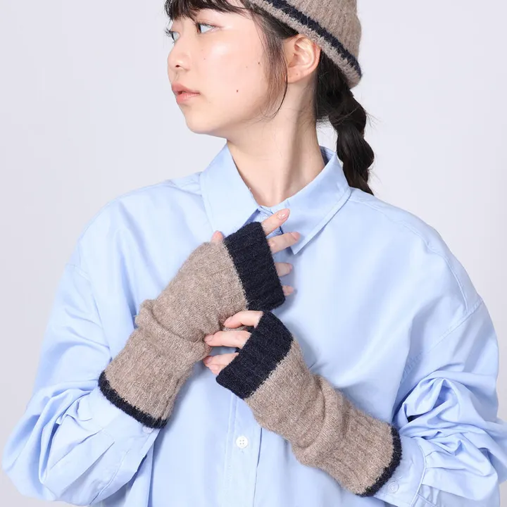 ふんわり軽やかなアルパカ 配色アームウォーマー BE