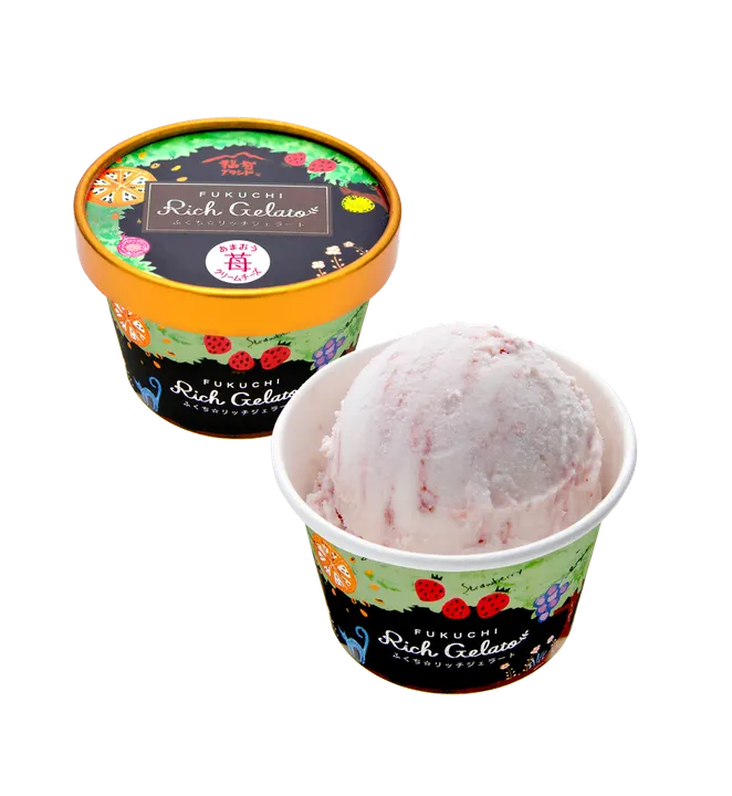 福岡県福智町のまちおこしブランドとして、町民の想いが詰まったジェラートです。カップのデザインが特徴的で消費者の目を引きます。