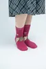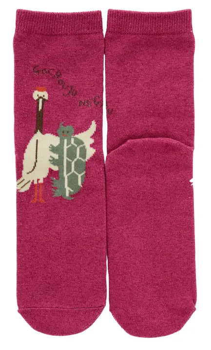 昨年2Pで発売した「くせ強ソックス」。 色柄も新しく、お求め頂きやすい1Pになって登場です。 クスっと笑えるイラストでプレゼントとしても好評です。 元気のない日の景気づけに一足いかがですか? 「ありえないだろ(笑)」とツッコみたくなるようなユニークなシチュエーションをソックスに織り込み、履くことによってテンションをあげてもらいたいという思いを込めています。 飛び出す刺繍やラメ糸をふんだんに使用し、お値段以上の凝りようです。 是非、周りに見せびらかすように履いていただきたいソックスです。 2Pソックスもございます。 ①宇宙船「ワレワレハウチュウジンダ」タコに似た宇宙人。ちょっと浮世を離れたい時に履いてほしい一足。飛び出た刺繍付き ②ビール猫「ビールに執着している猫」自己投影とも言えます ビール好きのあの人への贈り物にも◎ 飛び出た刺繍付き ③傘ヒョウ「日傘をさしてごきげんよう」 ゆったり優雅な気分を演出したいときの一足。飛び出た刺繍付き ④飴ヒョウ「こっそり飴を頬張るがバレバレ」 飴ちゃん巾着とセットでギフトに! 飛び出た刺繍付き ⑤スケボー馬「Hold your horse's 落ち着いて!」来年の干支は馬ですね。馬のボディにラメ糸使用 ⑥アヒル「Do good feel good 善行は幸せを呼ぶ」 こう見えて自己啓発系のアヒルです。アヒルの毛部分にラメ糸使用 ⑦ダンス猫「マイムマイム♪」フォークダンス好きの猫達が足首の周りで踊ります。猫のボディにラメ糸使用 ⑧鶴亀「ご長寿願う」同じモチーフの夫婦箸セットもあります。ベースのピンクがラメ糸。おめでたい感が満載です。 ⑨ガオヒョウ「ネックレス付けてご機嫌」アクセケースもご一緒に ベースのパープルはラメ糸を使っていてゴージャスな一足。 ⑩イエティ「ひゃ~」驚いた顔がかわいい ベースのサックスはラメ糸を使用し、ヒマラヤ山脈の冷たい氷を表現。 ⑪なまけ猫「www…」 疲れ過ぎて動けないのを見逃してほしい時の一足。猫のボディにラメ糸使用 ⑫つかまり猫「はなさへんで~」トラのような猫がエセ関西弁でしっかりあなたの足首にしがみつきます。ベースのグレーはラメ糸を使用