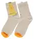 昨年2Pで発売した「くせ強ソックス」。 色柄も新しく、お求め頂きやすい1Pになって登場です。 クスっと笑えるイラストでプレゼントとしても好評です。 元気のない日の景気づけに一足いかがですか? 「ありえないだろ(笑)」とツッコみたくなるようなユニークなシチュエーションをソックスに織り込み、履くことによってテンションをあげてもらいたいという思いを込めています。 飛び出す刺繍やラメ糸をふんだんに使用し、お値段以上の凝りようです。 是非、周りに見せびらかすように履いていただきたいソックスです。 2Pソックスもございます。 ①宇宙船「ワレワレハウチュウジンダ」タコに似た宇宙人。ちょっと浮世を離れたい時に履いてほしい一足。飛び出た刺繍付き ②ビール猫「ビールに執着している猫」自己投影とも言えます ビール好きのあの人への贈り物にも◎ 飛び出た刺繍付き ③傘ヒョウ「日傘をさしてごきげんよう」 ゆったり優雅な気分を演出したいときの一足。飛び出た刺繍付き ④飴ヒョウ「こっそり飴を頬張るがバレバレ」 飴ちゃん巾着とセットでギフトに! 飛び出た刺繍付き ⑤スケボー馬「Hold your horse's 落ち着いて!」来年の干支は馬ですね。馬のボディにラメ糸使用 ⑥アヒル「Do good feel good 善行は幸せを呼ぶ」 こう見えて自己啓発系のアヒルです。アヒルの毛部分にラメ糸使用 ⑦ダンス猫「マイムマイム♪」フォークダンス好きの猫達が足首の周りで踊ります。猫のボディにラメ糸使用 ⑧鶴亀「ご長寿願う」同じモチーフの夫婦箸セットもあります。ベースのピンクがラメ糸。おめでたい感が満載です。 ⑨ガオヒョウ「ネックレス付けてご機嫌」アクセケースもご一緒に ベースのパープルはラメ糸を使っていてゴージャスな一足。 ⑩イエティ「ひゃ~」驚いた顔がかわいい ベースのサックスはラメ糸を使用し、ヒマラヤ山脈の冷たい氷を表現。 ⑪なまけ猫「www…」 疲れ過ぎて動けないのを見逃してほしい時の一足。猫のボディにラメ糸使用 ⑫つかまり猫「はなさへんで~」トラのような猫がエセ関西弁でしっかりあなたの足首にしがみつきます。ベースのグレーはラメ糸を使用