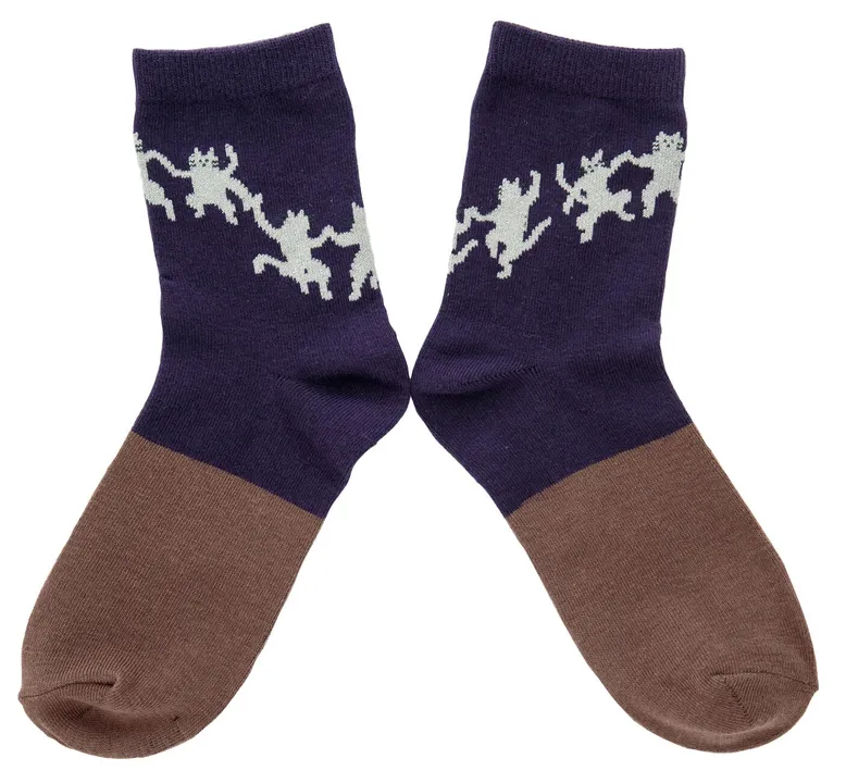 くせ強/1Pソックス 7222KST007 ネイビー×ブラウン(ダンス猫)