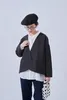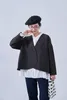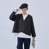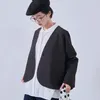 KNNJ355-ラウンドヘム・ノーカラー・キルティング風ジャケット・長袖アウター・秋・ガーリー BLACK/FREE