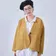 KNNJ355-ラウンドヘム・ノーカラー・キルティング風ジャケット・長袖アウター・秋・ガーリー MUSTARD/FREE