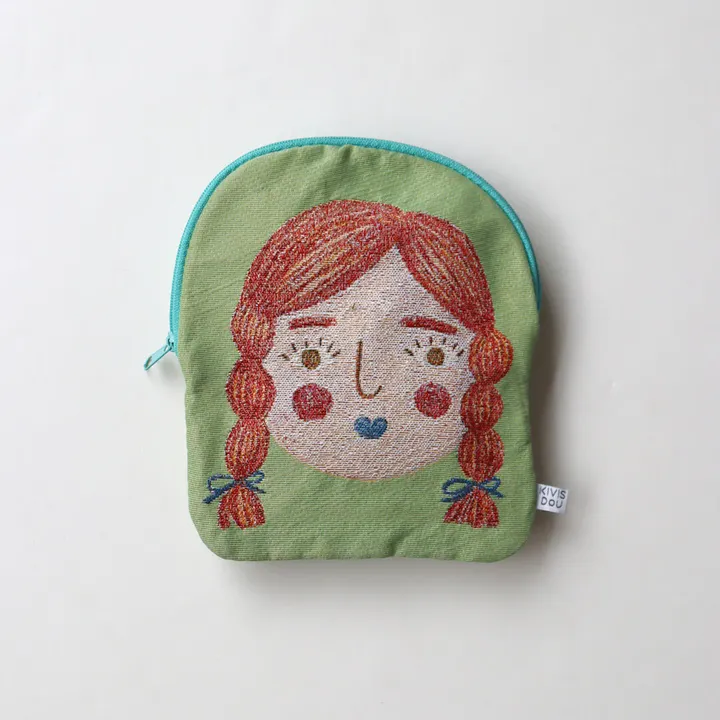 どの子にする?女の子たちの日常ポーチです♪ 表は女の子の顔の柄裏は女の子のお気に入りの物の柄 ※柄はプリントではなくジャガード織りです。 ◎36イエロー:バーバラ ×読書とコーヒーが好き ◎45グリーン :ナンシー×寝る時はテディベアといつも一緒 ◎52サックス:エミリー×将来の夢はお花屋さん シーズン:オールシーズン KIVISDOU きびすどう キビスドウ ポーチ このブランドはECモール(楽天、Yahoo!ショッピング、Amazon等)出品NG商品です!