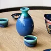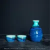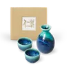 トルコと藍色がグラデーションになった美しいデザイン お酒好きな人の心をくすぐります 電子レンジや食洗機が使える扱いやすさが便利な酒器セットです