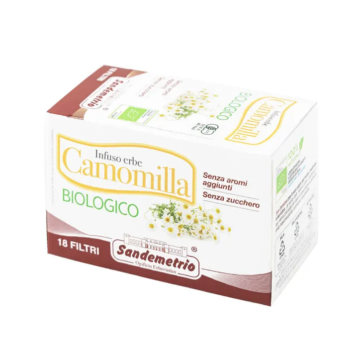サンデメトリオのオーガニックハーブティーは、南イタリアのプーリア地方にある直営有機農園で栽培されたハーブを使用しています。またイタリアの有機認証機関「ICEA」の認定、ならびにEUヨーロッパ連合の有機農業認証を受けています。イタリア産オーガニックハーブの香りと味を是非お楽しみください。 カモミールは、りんごのような香りとやわらかな甘みが特徴の代表的なハーブです。 リラックス効果があるので、お休み前などにおすすめです。 ノンカフェイン&ノンカロリー 無香料無着色 有機JAS認定