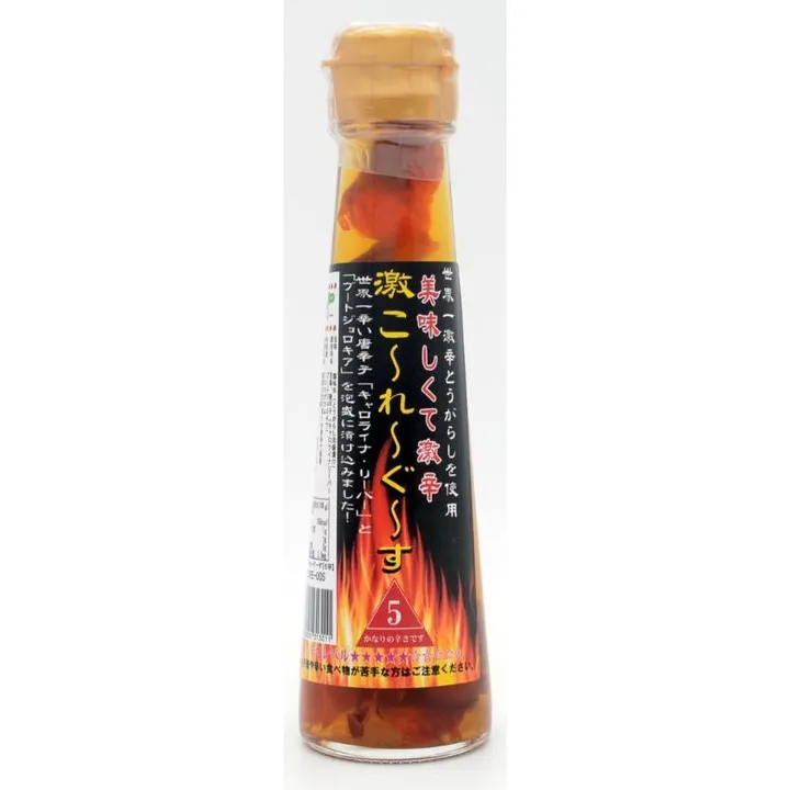 ★うどん・そば・ラーメン・沖縄そば・麻婆豆腐・冷奴・おひたし・パスタ・焼きそば・焼き魚・煮魚・角煮・エビチリなど和食〜中華〜イタリアンまで幅広く使えます。そのままかけるだけで辛さとうまさがとっても増します! ★一般的に市販されているコーレーグスの数倍〜10倍以上辛い商品です。5辛、10辛、15辛の3種類をご用意しました。◆5辛→タバスコの約150倍の辛さ◆10辛→タバスコの約250倍の辛さ◆15辛→タバスコの約380倍の辛さ ★通常コーレーグスは沖縄県産の島とうがらしを泡盛に漬け込んだ、辛味調味料ですが、当店の商品はギネス世界一認定の激辛唐辛子、「キャロライナ・リーパー」と「ブート・ジョロキア」だけを大量使用。 ★原材料は沖縄県産の名門泡盛と激辛唐辛子2品種だけで作りました。 ★超〜激辛!そのまま舐めると、ズバリ1滴でも痛さを感じます。スプーン一杯だとしばらく痺れます。5辛→辛さに強い方でしたら程よく超激辛です。10辛→激辛好きな方でも相当な辛さを感じます!15辛→ヤバ 【原材料・成分】 泡盛、唐辛子(キャロライナ―リーパー・ブートジョロキア) 【保存方法】 直射日光、高温多湿を避けて保存してください。