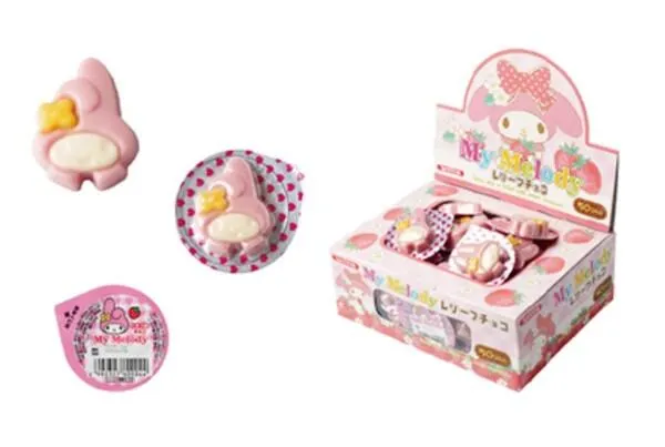 イチゴ味のマイメロディーレリーフチョコ。 50個入り。フタの裏面がおみくじになっています。