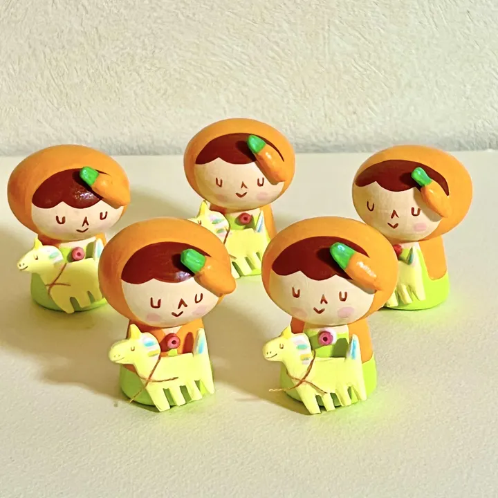 日本・仙台は『こけし』の名産地。 ユニコーンをイメージしたうまちゃんを 抱えて、頭のにんじんやレトロなスカーフも かわいい、小さな創作こけし。 仙台在住のイラストレーター泉友子が絵付け。 お誕生日のプレゼントにもオススメ!! *商品サイズ : 縦約3cm(頭) × 横約3cm (頭)× 高さ約5.5cm *こけし木地:天然木 パーツ:紙粘土 絵付画材:アクリル絵具 *一つ一つ手づくりのため表情や色・材質等が 写真と異なる場合がございますのでご了承ください。 *PCモニターやスマホ画面と色が違って見えることがありますので、 ご了承お願いいたします。