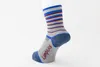 【自転車専用】Looplus(ループラス)アップサイクル自転車ボーダーソックス(ブルー×エンジ) Mサイズ(25-27cm)